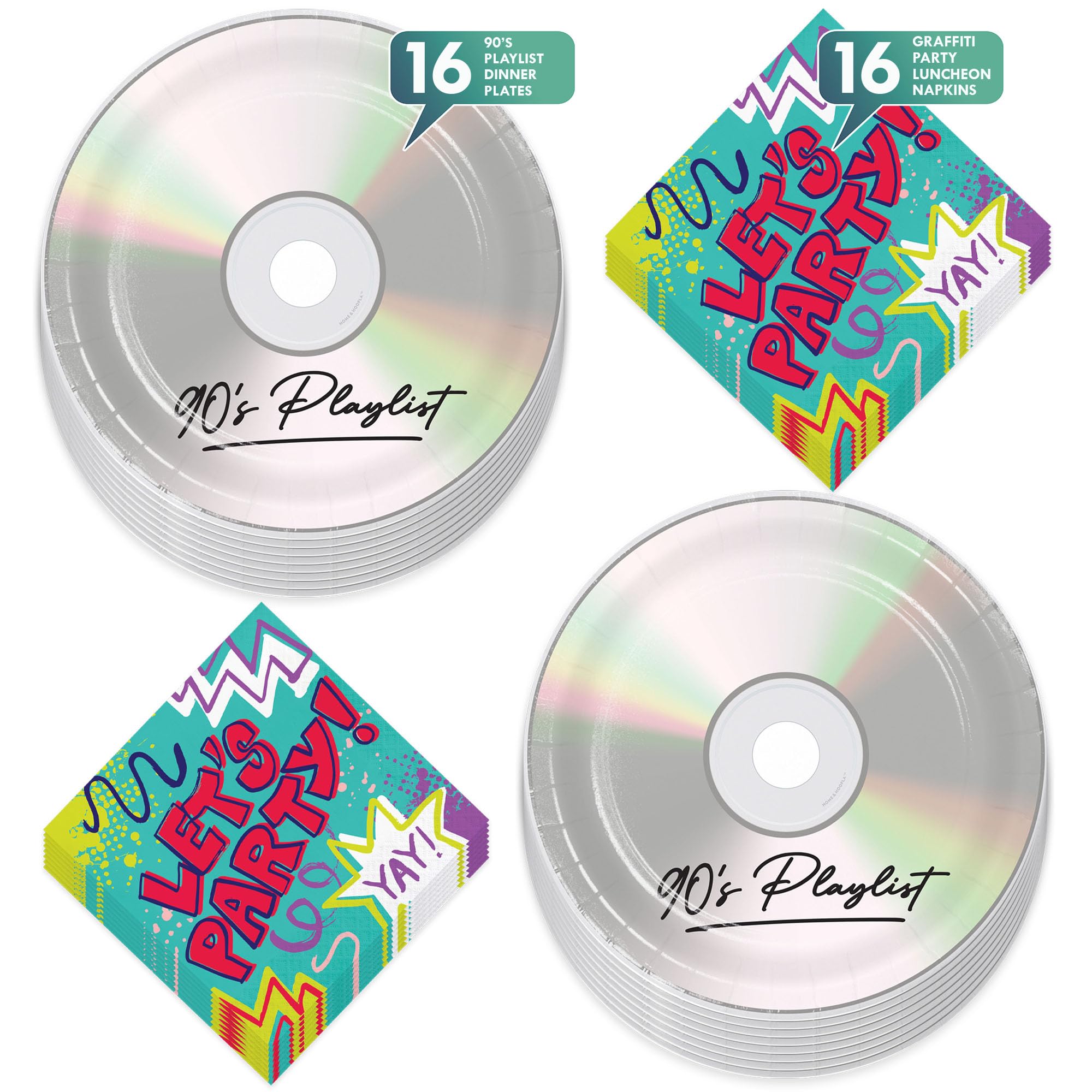 90's Party Supplies - 90's Mix CD Paper Dinner Plates and Let's Party Napkins (Serves 16)