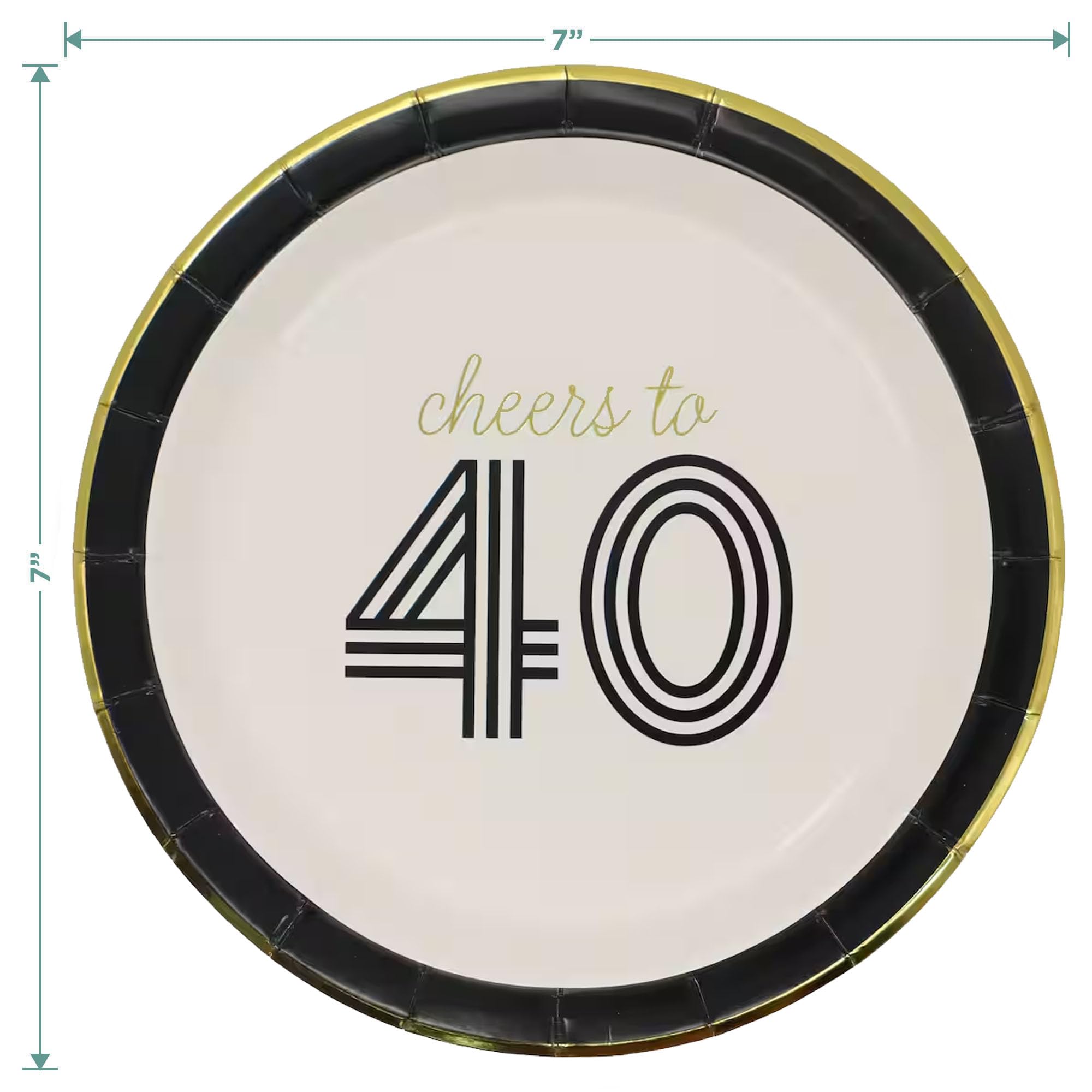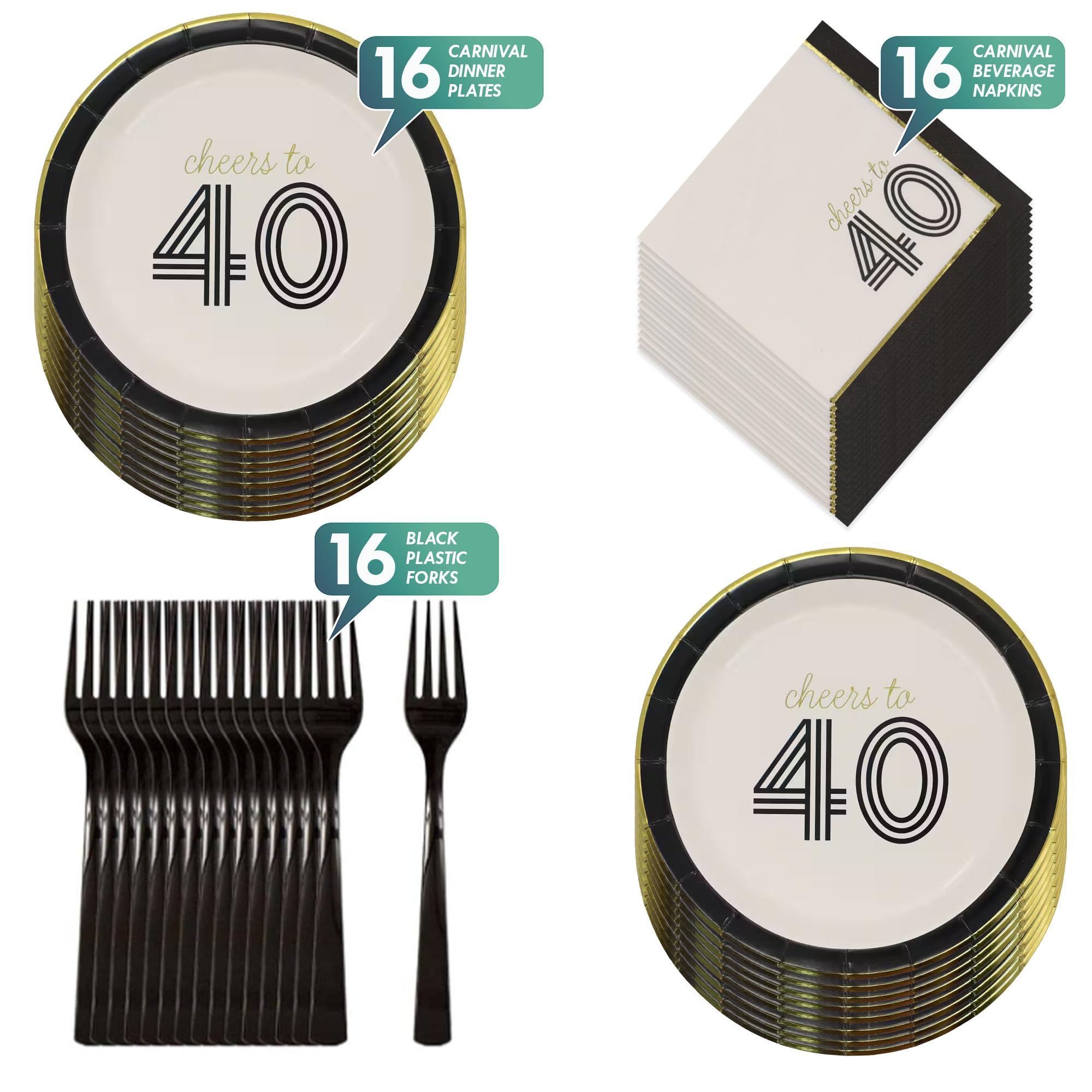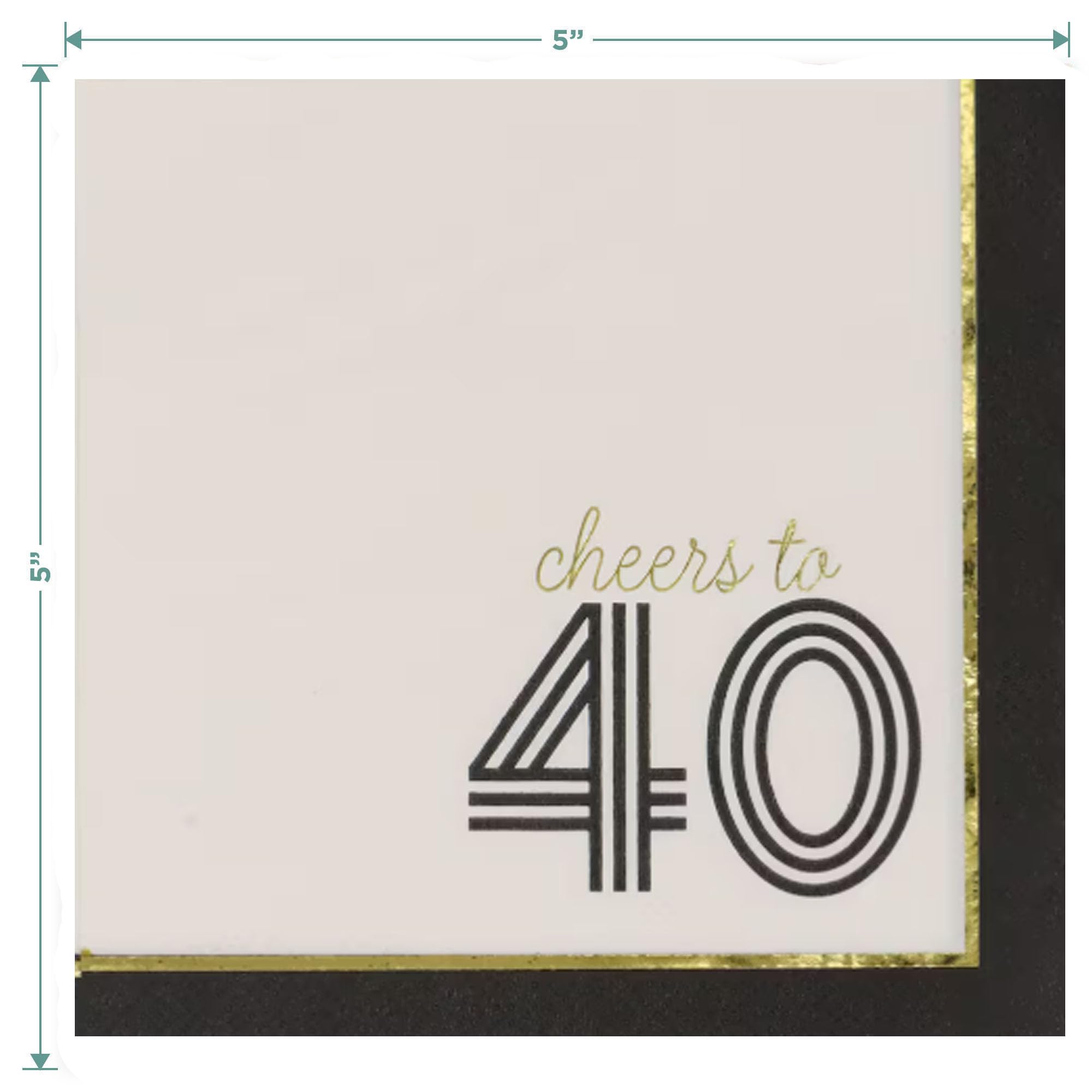 Cheers to 40, 40th Birthday Party Plates, Napkins, and Forks Set – Black and Gold Foil Dessert Plates (7”), Beverage Napkins and Plastic Forks (Serves 16)