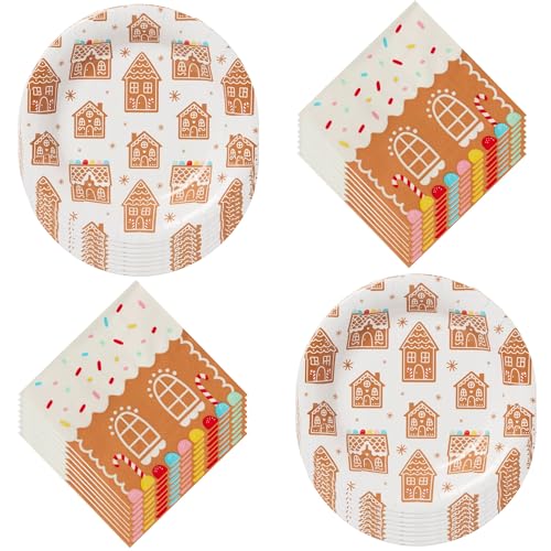 HOME & HOOPLA Gingerbread Party Paper Plates and Napkins for Christmas Holiday and Winter Parties (Serves 20)