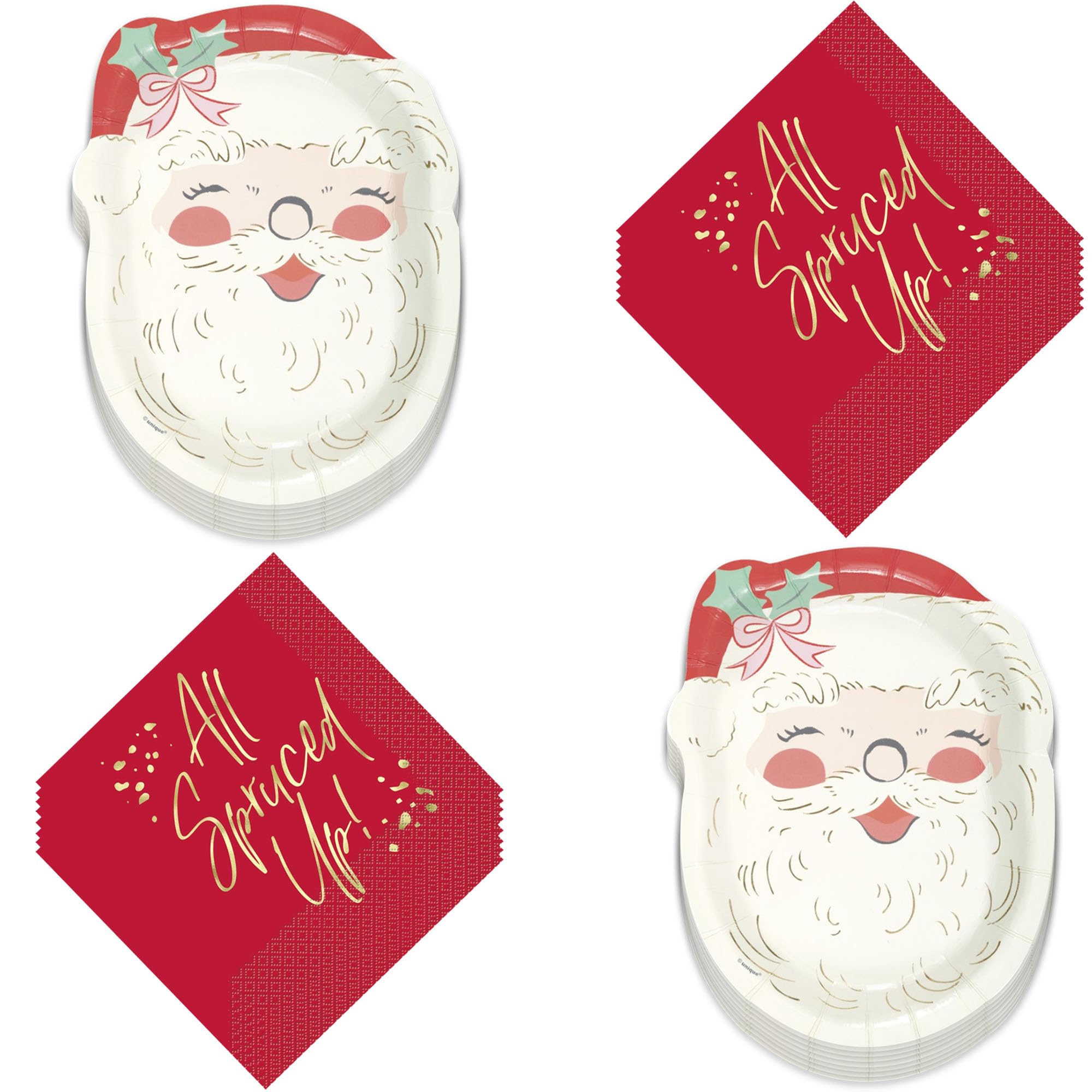 Vintage Christmas Holiday Party Santa-Shaped Paper Dessert Plates & Napkins (16 Plates & Napkins)