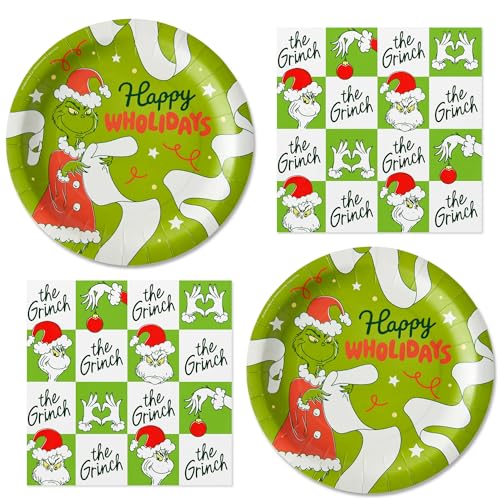 - Featuring large "He's A Mean One" Grinch dinner plates and matching “How the Grinch Stole Christmas” quote napkins.
