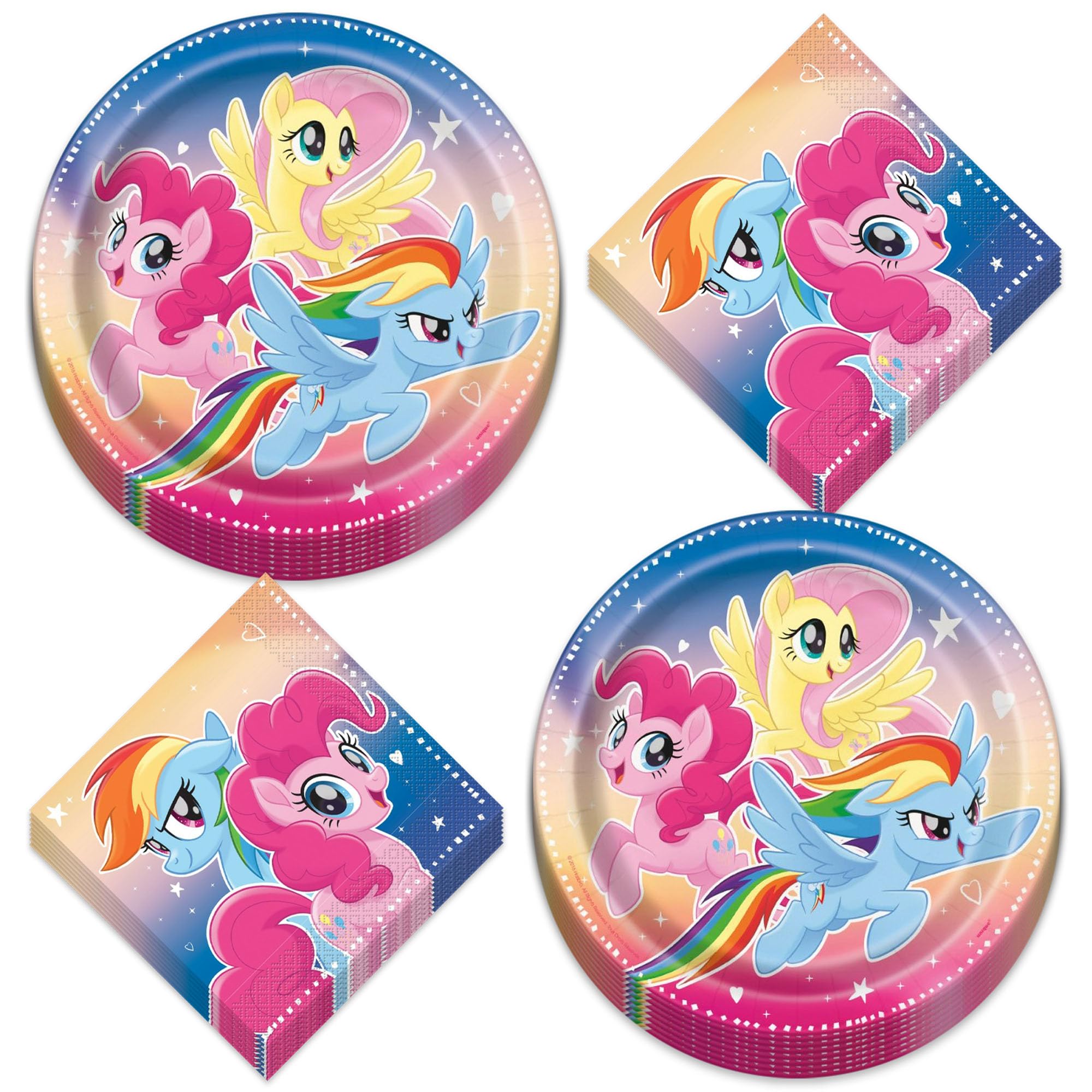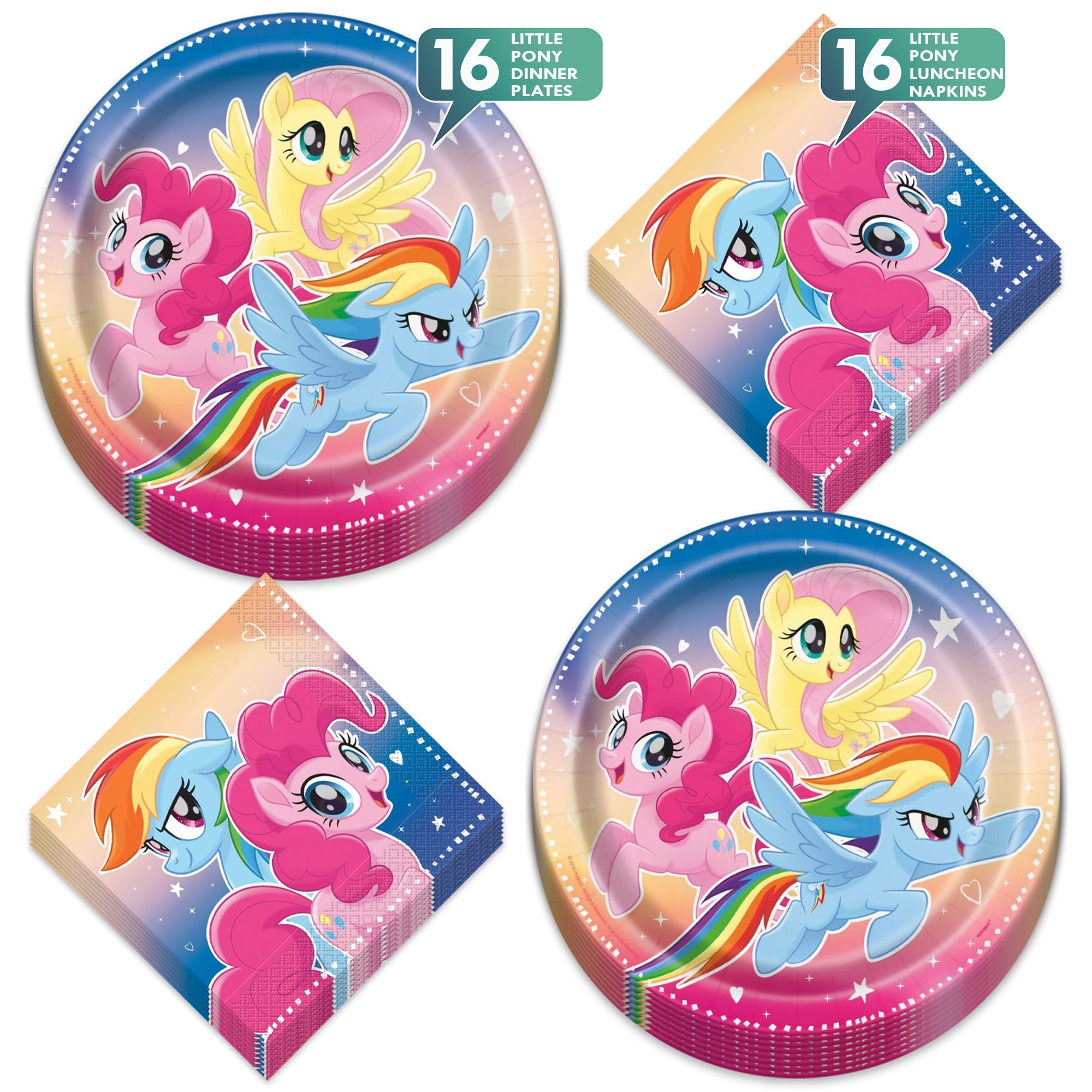 Home and Hoopla My Little Pony Party Supplies - My Little Pony & Friends Theme Birthday Party Round Paper Dinner Plates and Lunch Napkins (16 Plates and Napkins)