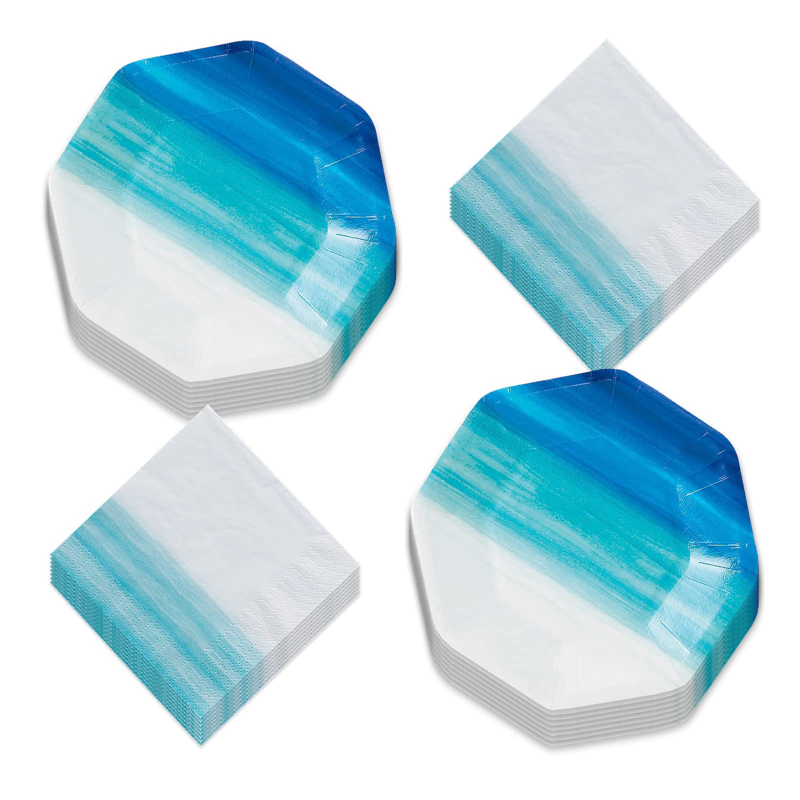 Coastal Blue Paper Dessert Plates and Beverage Napkins (Serves 16)