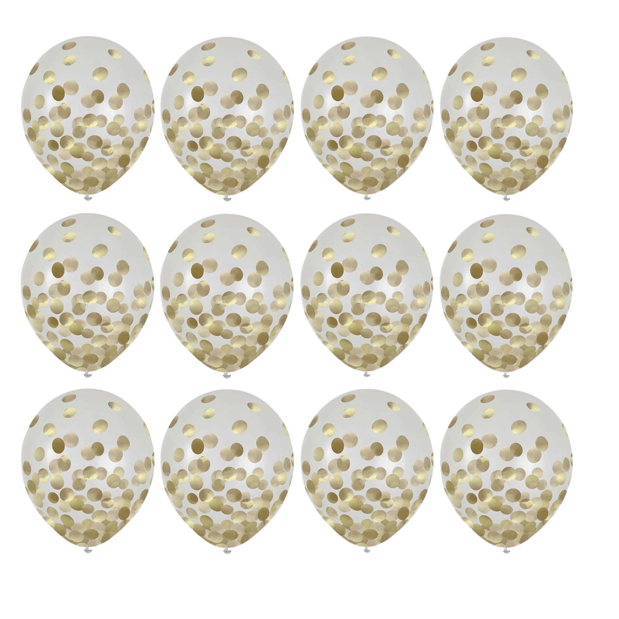 - Featuring clear balloons filled with gold dot confetti.
