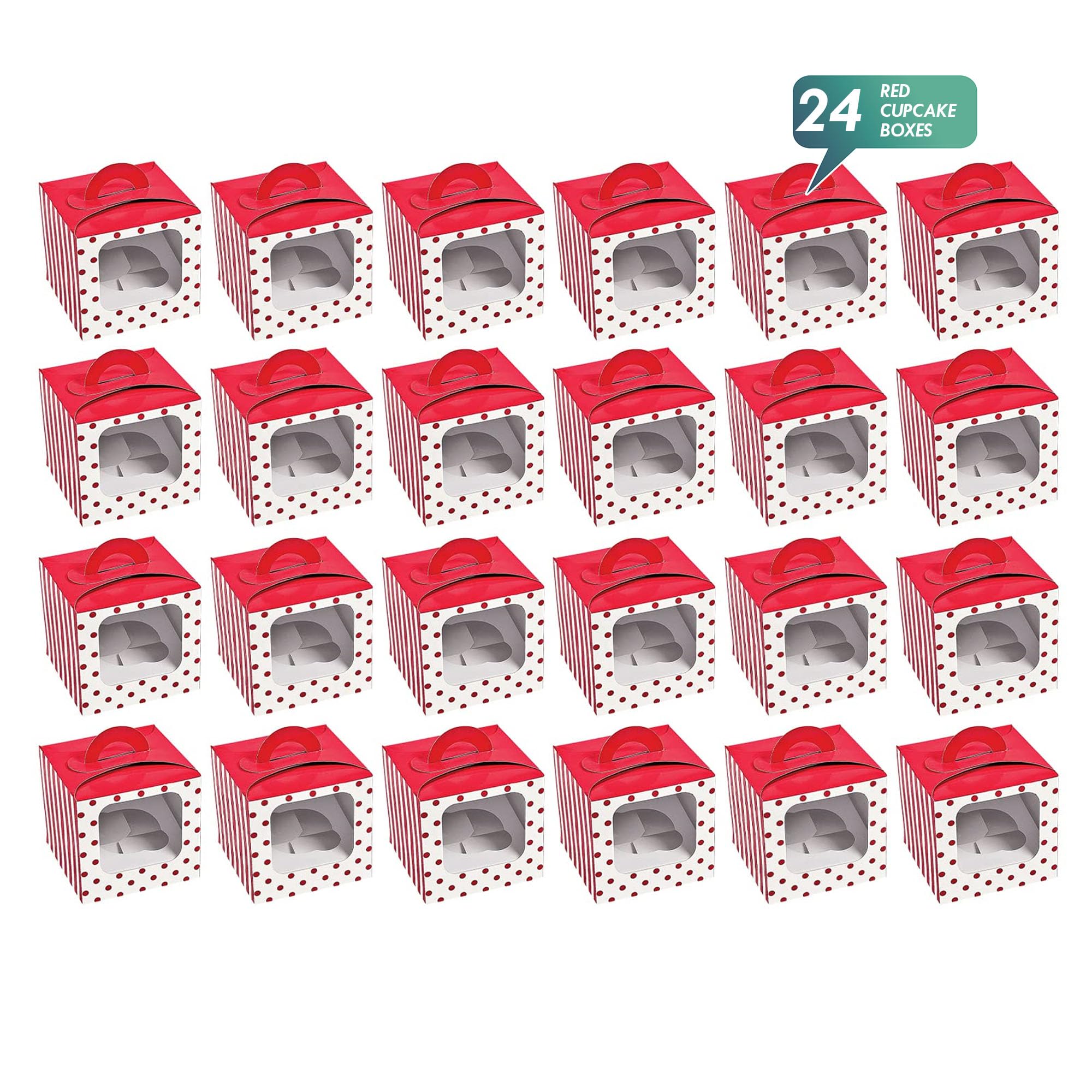 - Set of 24 individual holiday cupcake boxes with handles - Great for seasonal party treats, holiday gifts, Christmas bake sales, or winter wedding favors!