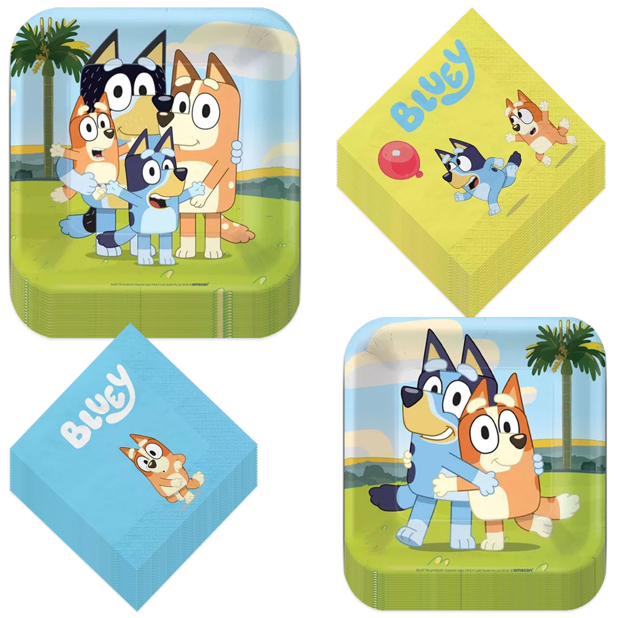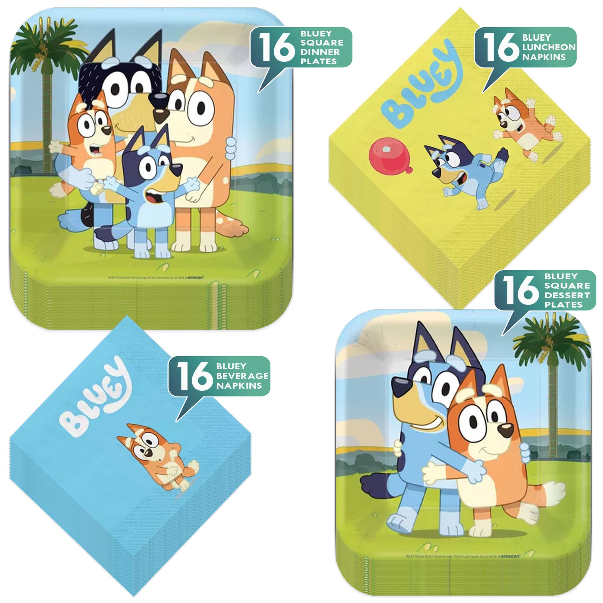 Bluey Party Supplies β 64 Piece Birthday Set with Dinner Plates, Dessert Plates & Napkins β Bluey Theme Party Kit